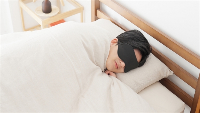 アイマスクを使えば、目を閉じても気になる明かりが真っ暗に塗りつぶされます。